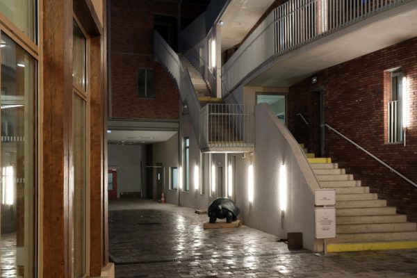Programme : Restructuration lourde de 3 bâtiments existants dont 2 de nature industrielle fin XIXe s. en ossature bois et métal/brique, et construction d’un bâtiment neuf en béton armé ; mise aux normes de sécurité incendie, thermiques et d’accessibilité sur l’ensemble du site; ERP type R de 3ème catégorie ; locaux : régie scénique (théâtre, grand studio), studios régie son, plateaux lumière et vidéo, salles d’accessoires, ateliers de menuiserie et de serrurerie, salles d’informatique, service logistique, l’administration, salles de classes de l’enseignement théorique.